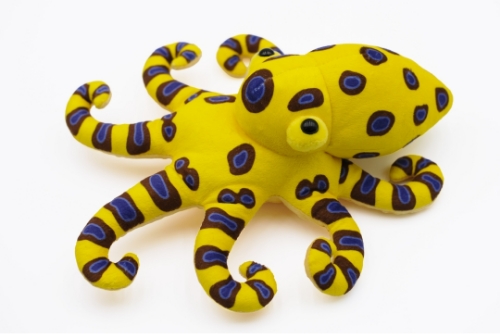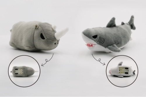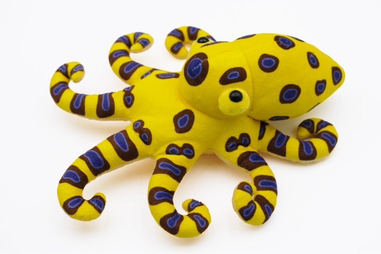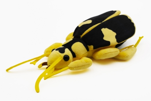 本展に展示される“危険生物”たちがぬいぐるみに。監修者一押しの「ミイデラゴミムシ」のぬいぐるみには、100℃の高圧ガスを噴射する「へっぴり」攻撃をおしりに鳴き笛を入れて再現。テトロドトキシンを持つ「ヒョウモンダコ」は、外部からの刺激により黄色や青の模様(=ひょう紋)を浮かび上がらせた警告色デザインに。「サスライアリの女王」はその特徴的な体形に着目し、多数の卵をおさめる腹部のしっかりとしたふくらみを表現。「ホホジロサメ」と「シロサイ」は後ろに引っ張り手を離すと突進する仕掛けつき。それぞれの素早さと力強さをイメージしたアイテムとなっています。細部までこだわった“危険生物”たちにご注目ください。