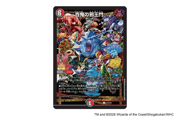 さらに、特設ショップでデュエマ商品をご購入いただいた方には、プロモーションカード《百鬼の邪王門》をプレゼント!デュエマの“超危険生物”たちと一緒に「危険生物研究所」を楽しもう!