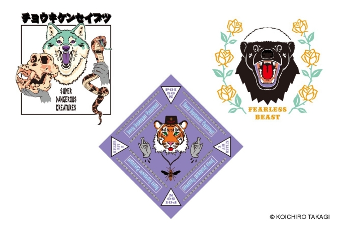 動物や擬人化した動物をモチーフとし、親近感と違和感、匿名性と神秘性など対峙する要素が混在する作品を生み出すアーティスト・高木耕一郎さんが本展のために3点のアートを描き下ろし。それらを使用したTシャツ、トートバッグ、キーホルダーなどのアイテムが特設ショップに登場します!