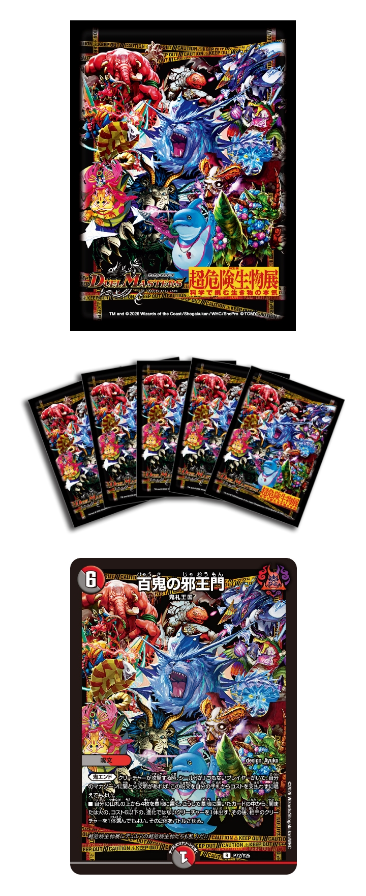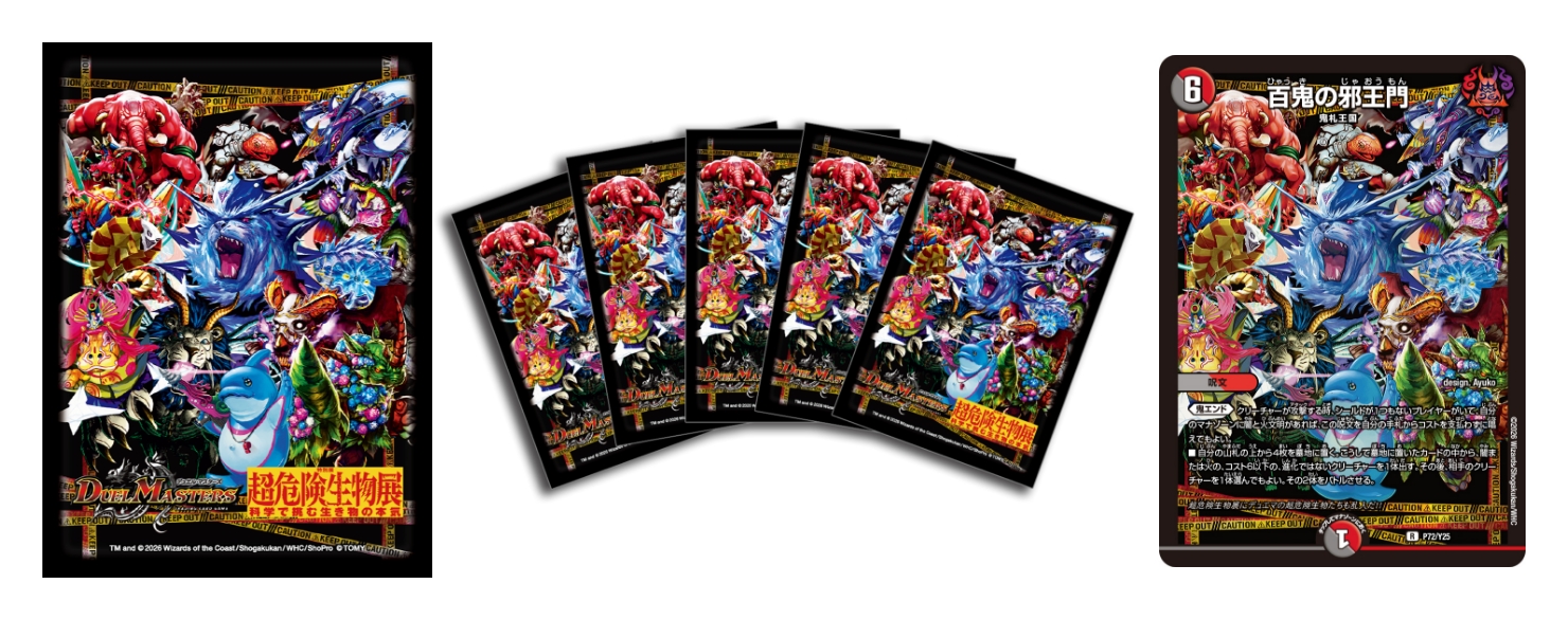 - ※「デュエル・マスターズ×特別展『超危険生物展』コラボカードスリーブ」は、4月7日(火)から特別展会場内の特設ショップでも880円(税込)で販売します。会場特設ショップでのプロモーションカード《百鬼の邪王門》の配布には条件があります。詳細は決定次第展覧会公式サイトおよびXで発表します。